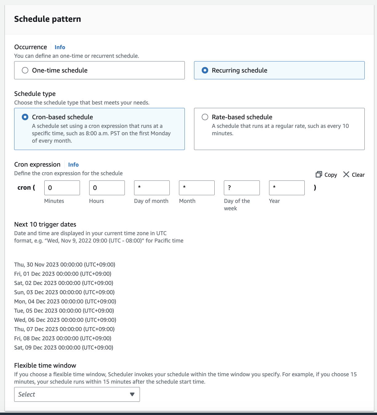 3. Next 10 trigger dates 를 확인하면 내가 잘 설정했는지 확인할 수 있다.
