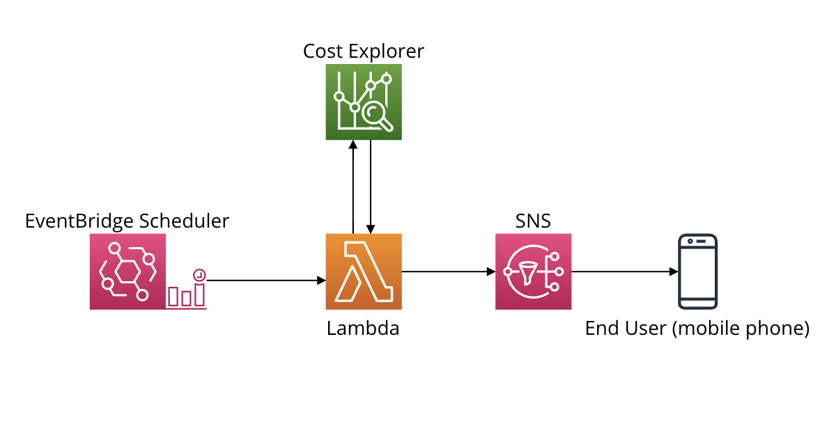 - boto를 통해 cost explorer에 접근해 budget 정보를 긁어오고, sns로 문자 발송을 명령한다.