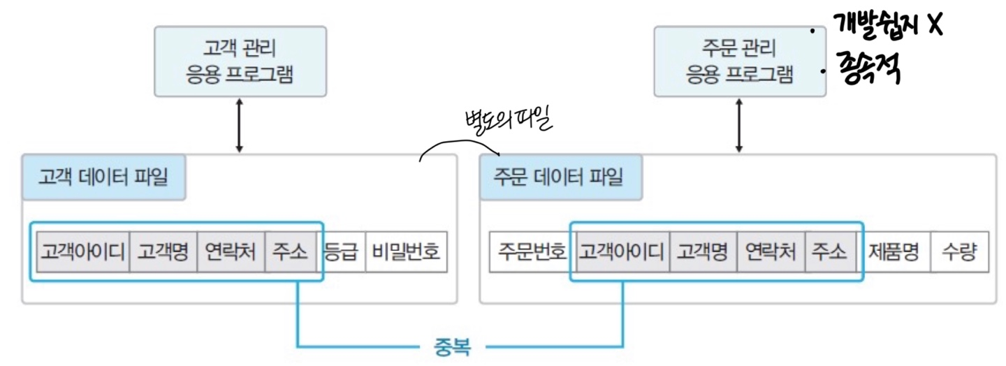 - 응용 프로그램별로 필요한 데이터를 별도의 파일로 관리