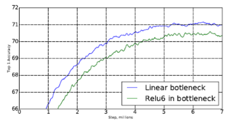 저 가설을 바탕으로 실제 실험을 하였는데 bottleneck layer를 사용했을 때 ReLU를 사용하면 오히려 성능이 떨어지는것을 확인✔️